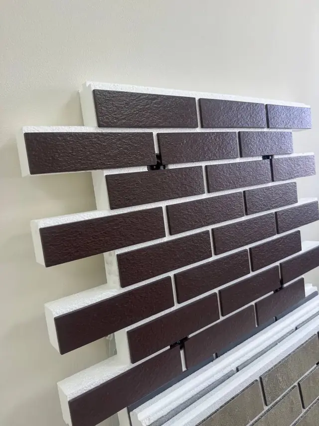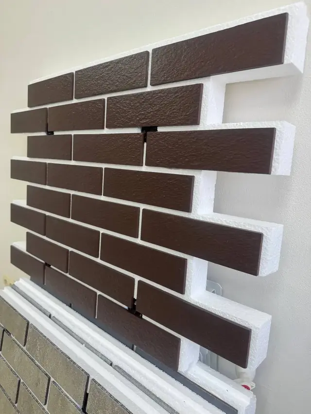 Клинкерная фасадная термопанель Амстердам 4 рельеф. Цвет: Тёмно-коричневый, рельефная поверхность. Утепление пенополистиролом и облицовка польской клинкерной плиткой. Срок службы от 50 лет.