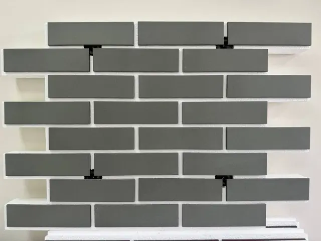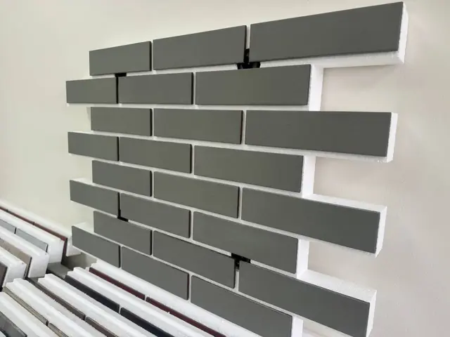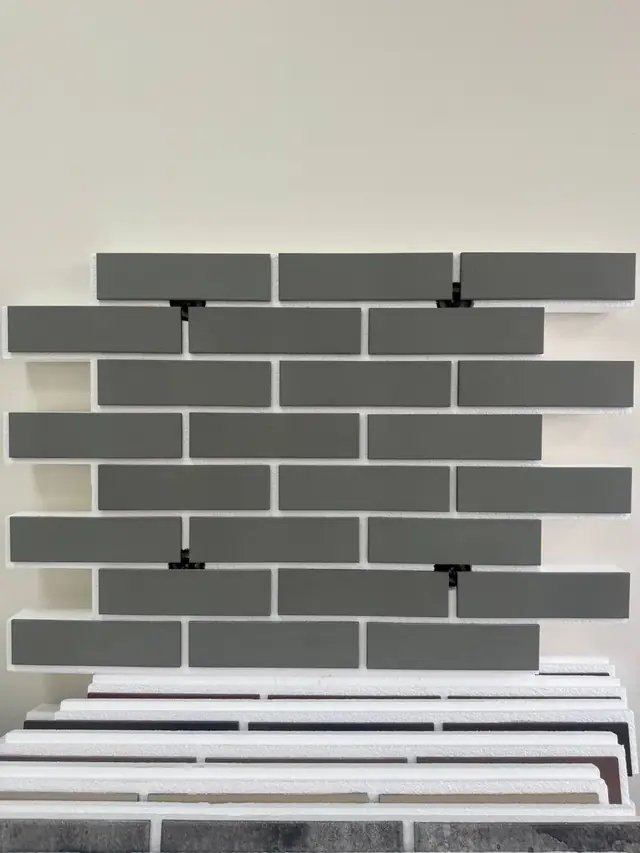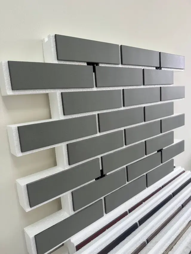 Клинкерная фасадная термопанель Куба 6. Цвет: Светло-серый. Утепление пенополистиролом и облицовка польской клинкерной плиткой. Срок службы от 50 лет.
