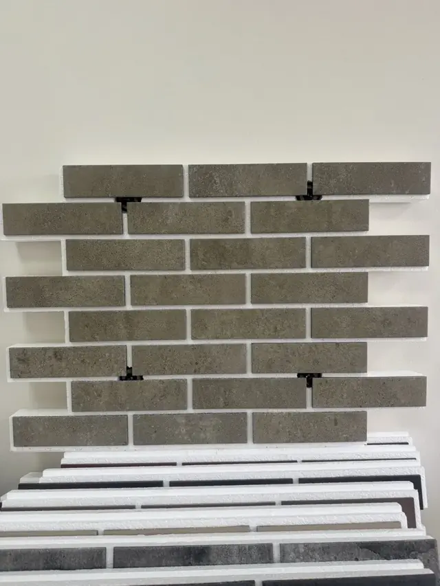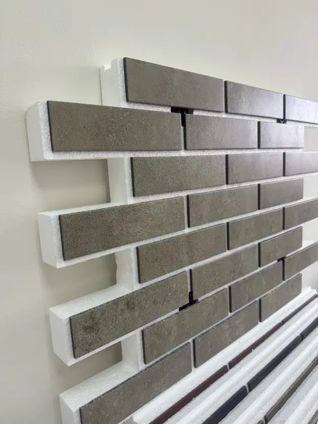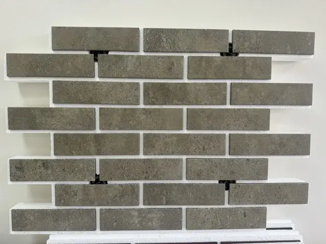 Клинкерная фасадная термопанель Юта 3. Цвет: Серо-коричневый, натуральный камень. Утепление пенополистиролом и облицовка польской клинкерной плиткой. Срок службы от 50 лет.